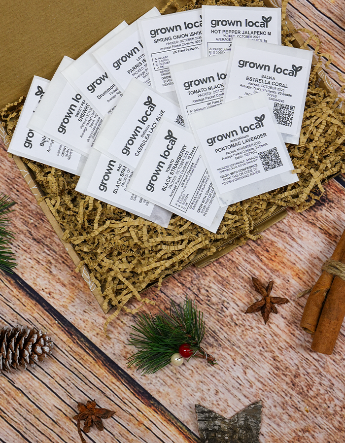 Each box is filled with shredded tissue, finished with a seasonal postcard we’ve designed especially for Christmas, and sent in a decorated box that’s ready to gift as it is. A thoughtful way to share the joy of growing.